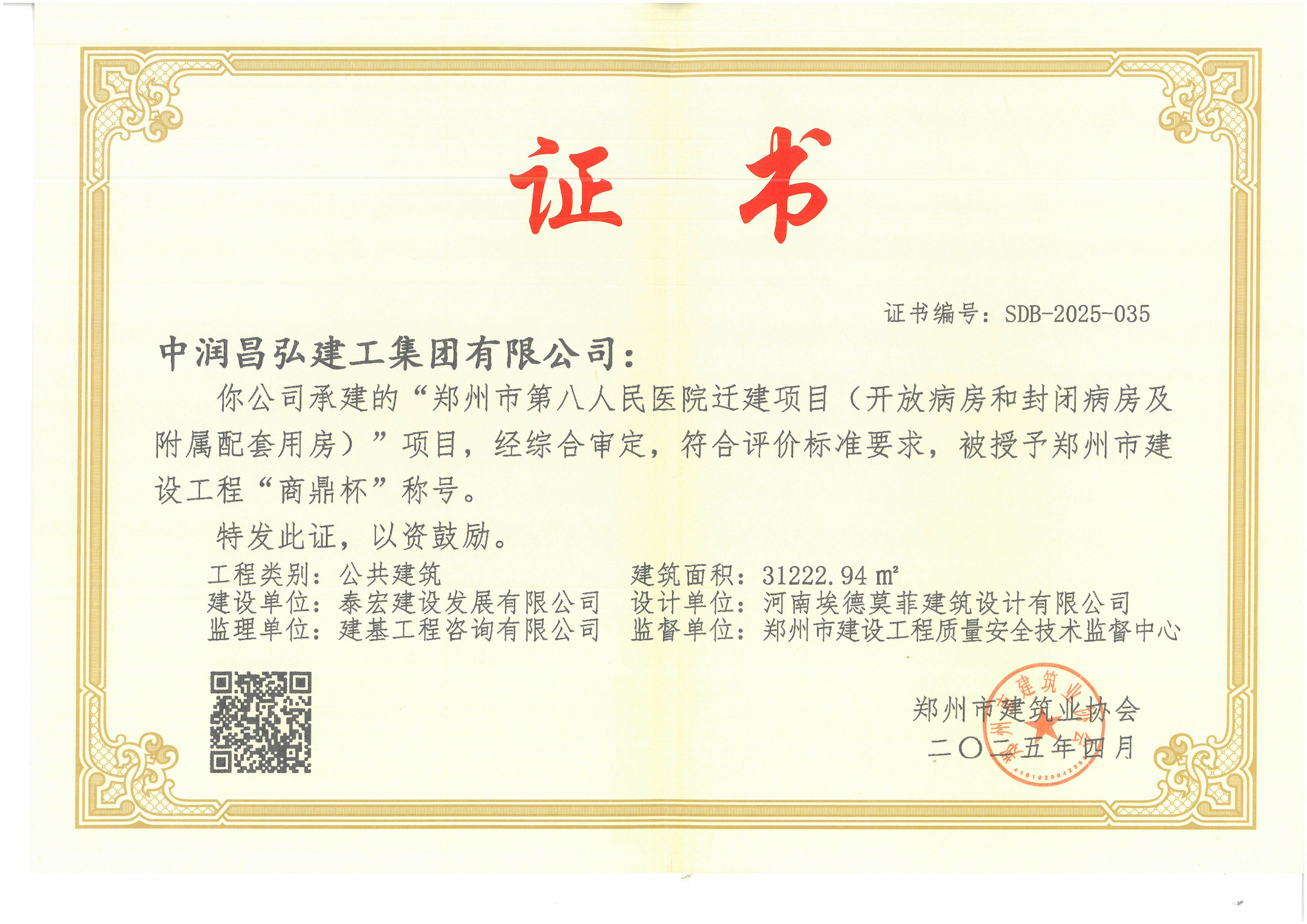 近日,星空体育承建的省直青年人才公寓博学苑项目、金岱智慧产业园二期项目及代建的郑州市第八人民医院迁建项目被郑州市建筑业协会授予郑州市建设工程“商鼎杯”称号。